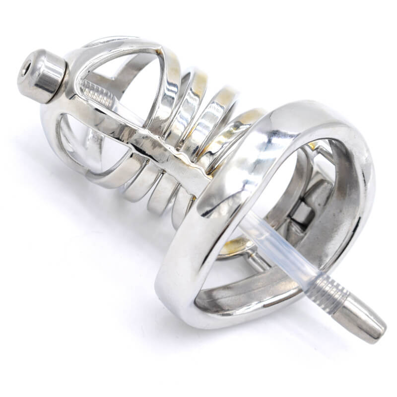 Cage de chasteté en acier inoxydable avec tube urétral